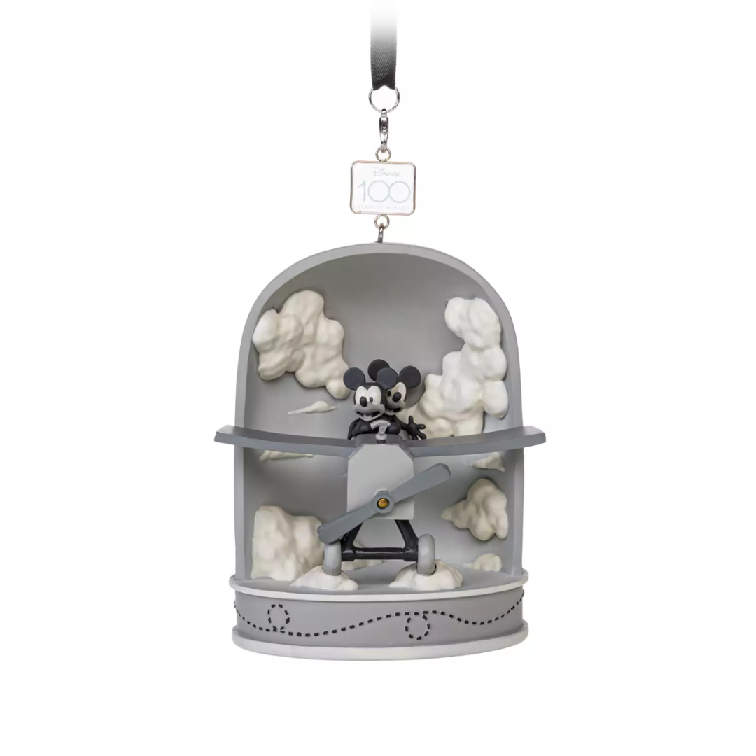¡Haz una maravillosa adición a tu decoración con este adorno colgante! Inspirado en Plane Crazy, la primera película de Mickey Mouse producida, el diseño esculpido se completa con una hélice que gira.