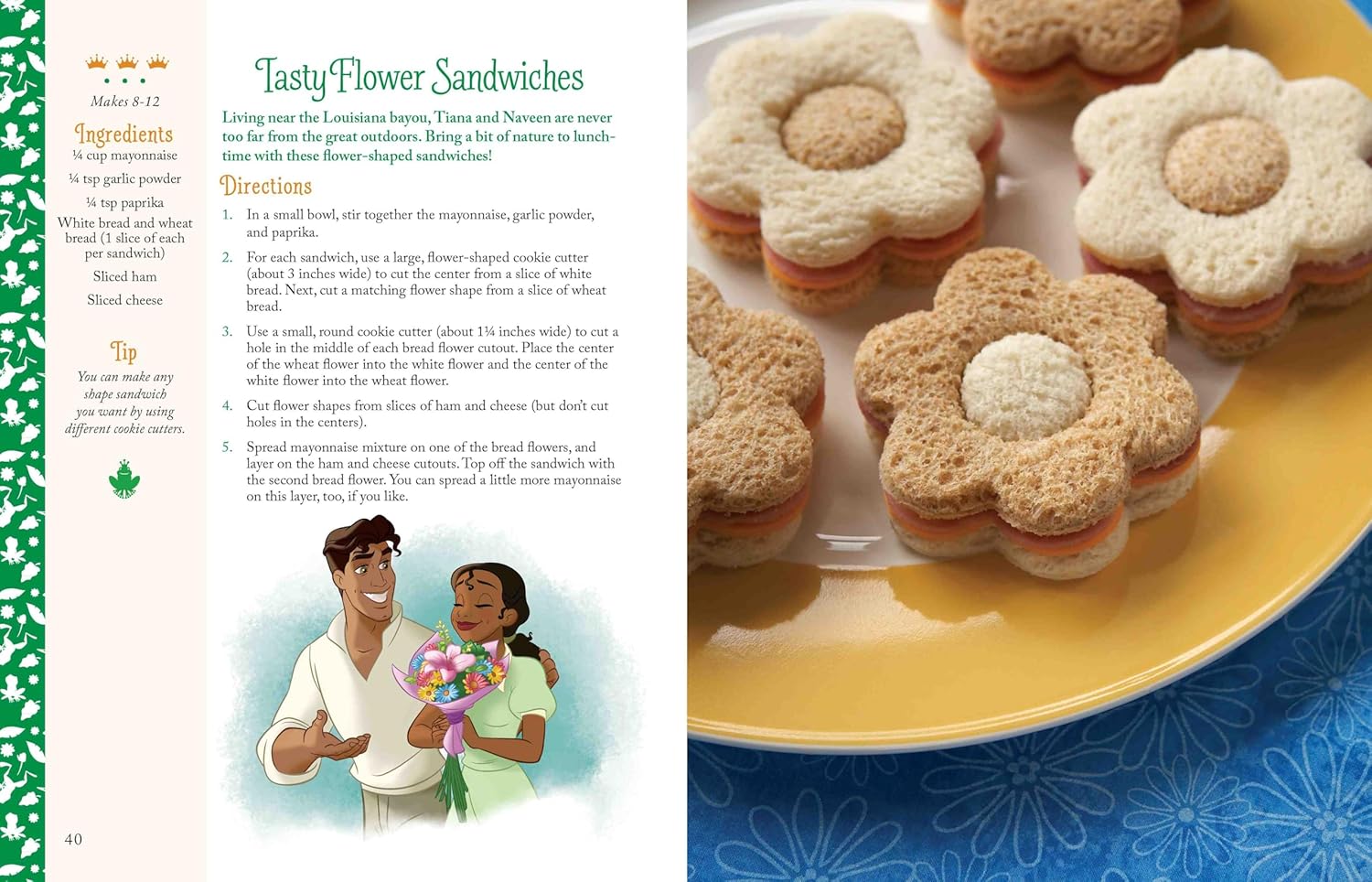 Haz que la cocina sea divertida y mágica con el Disney Princess Cookbook, un libro con 50 recetas fáciles y deliciosas inspiradas en las princesas de Disney y sus aventuras. Con platos como los Huevos en sartén de Rapunzel, el Pastel de carne de Tiana o el Ponche tropical de Moana, cada receta está acompañada de fotos a todo color, ilustraciones encantadoras y una guía de dificultad para que los pequeños chefs sepan por dónde empezar.