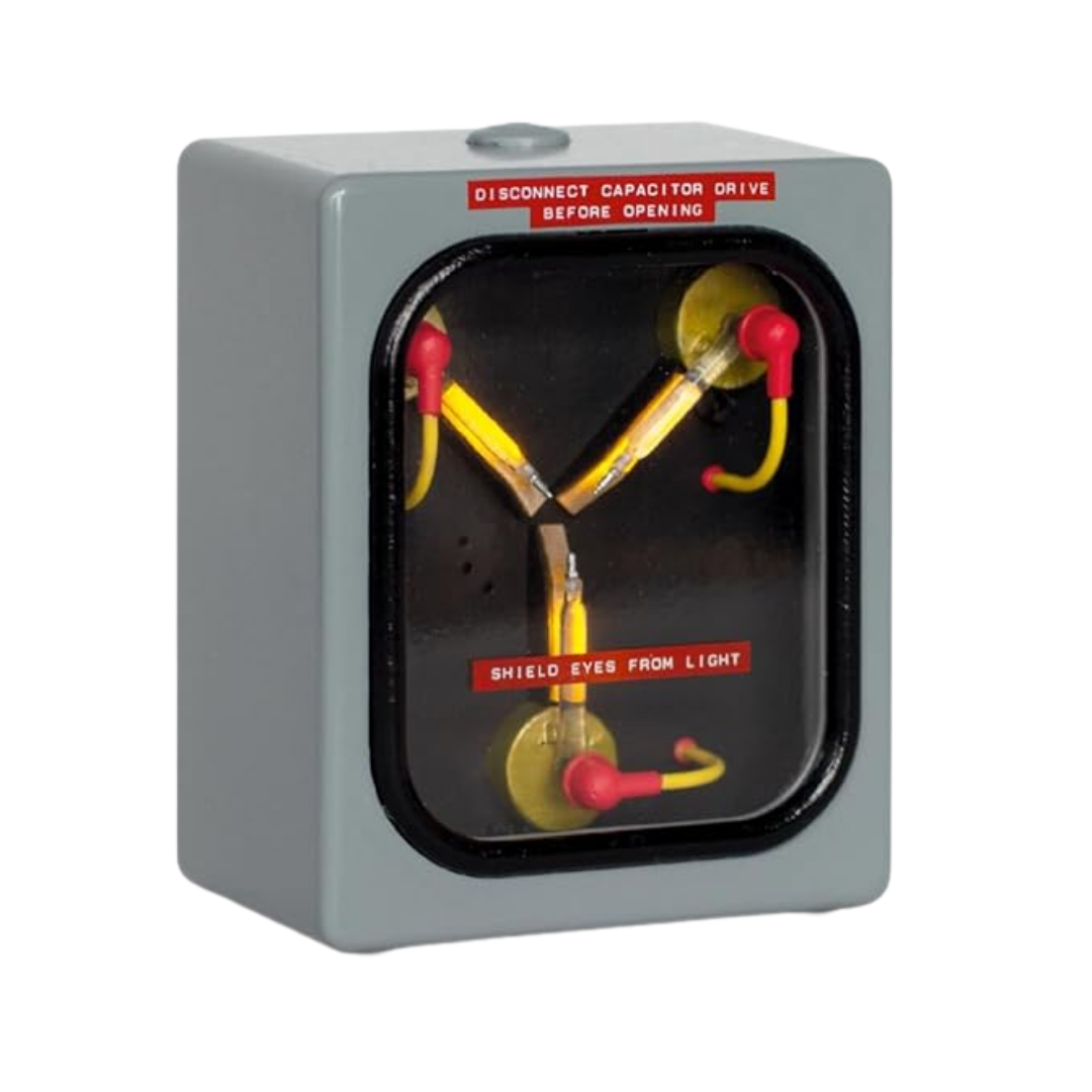 Revive los viajes en el tiempo con esta réplica en miniatura del legendario condensador de flujo de Back to the Future, tal como lo diseñó el Doctor Emmett Brown. Un coleccionable oficial que captura la esencia de la trilogía más icónica del cine de ciencia ficción.