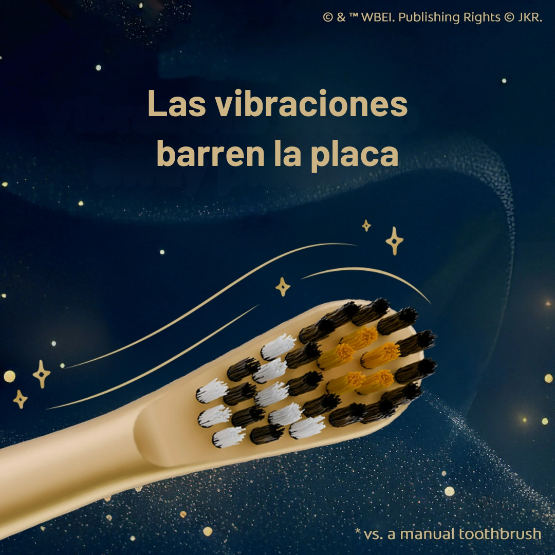 Haz que el cepillado diario se sienta como una aventura mágica con el cepillo de dientes a batería Colgate Harry Potter Slytherin, ideal para peques desde los 3 años. Su cabezal vibratorio pequeño y sus cerdas extra suaves ayudan a limpiar mejor que un cepillo manual, cuidando encías delicadas y facilitando que los niños aprendan a cepillarse solitos.