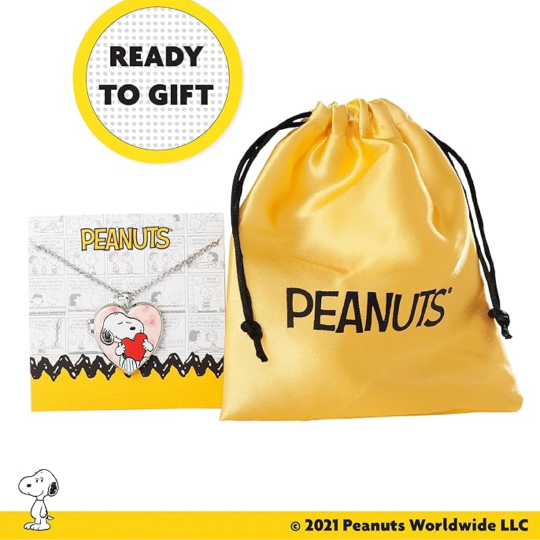 Collar femenino con licencia oficial de Peanuts, ideal para fans de Snoopy. Incluye un delicado medallón en forma de corazón con Snoopy en el exterior y una tierna imagen de Woodstock en su interior, perfecto para regalar o llevar siempre contigo.