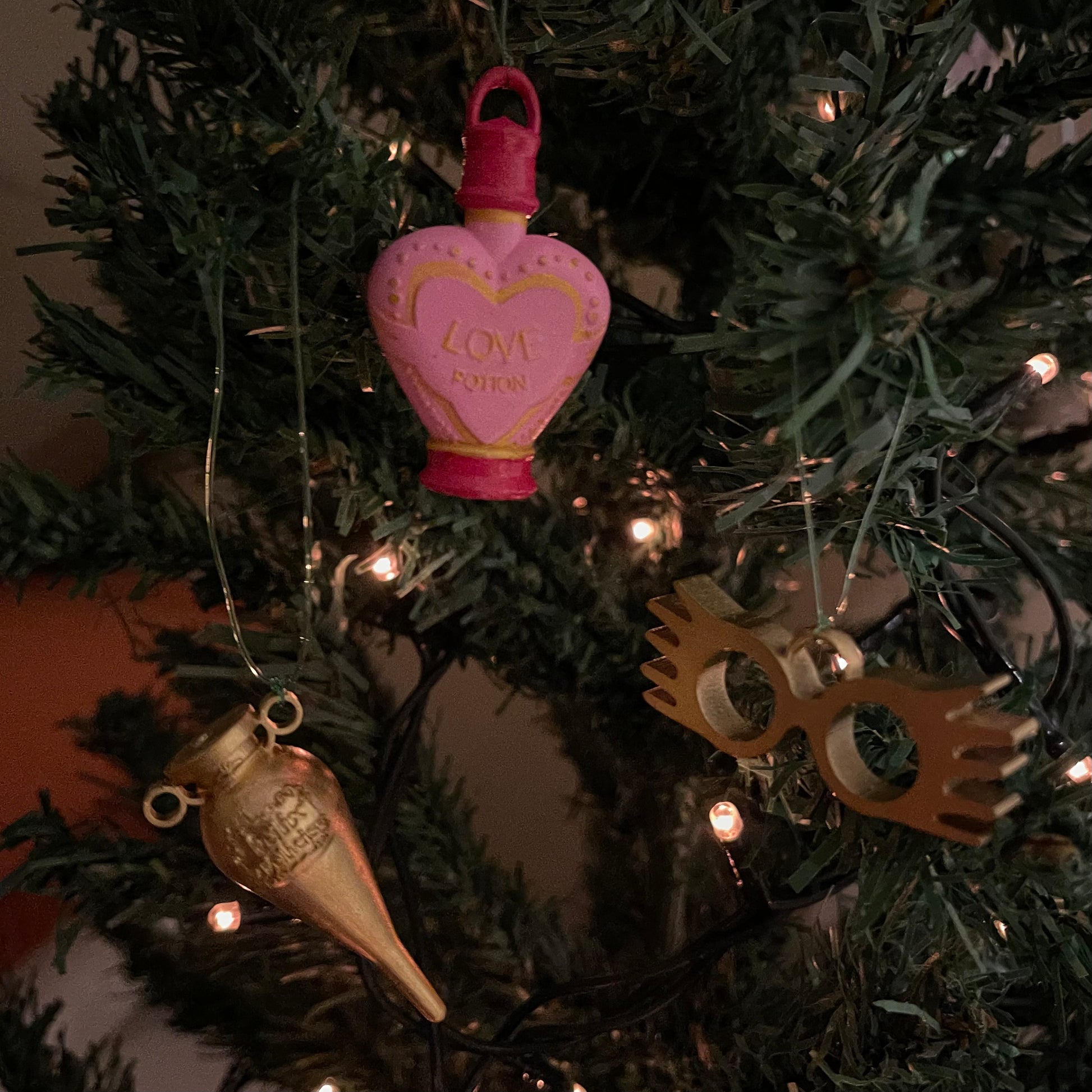 Descubre el lado más místico del mundo mágico con este set de adornos. Incluye la Amortentia, la poción de amor más poderosa; Félix Felices, la poción que asegura la suerte; y los inconfundibles lentes de Luna Lovegood, que capturan la extravagancia y sabiduría única de este querido personaje. Un set ideal para amantes de la alquimia y lo inusual.
