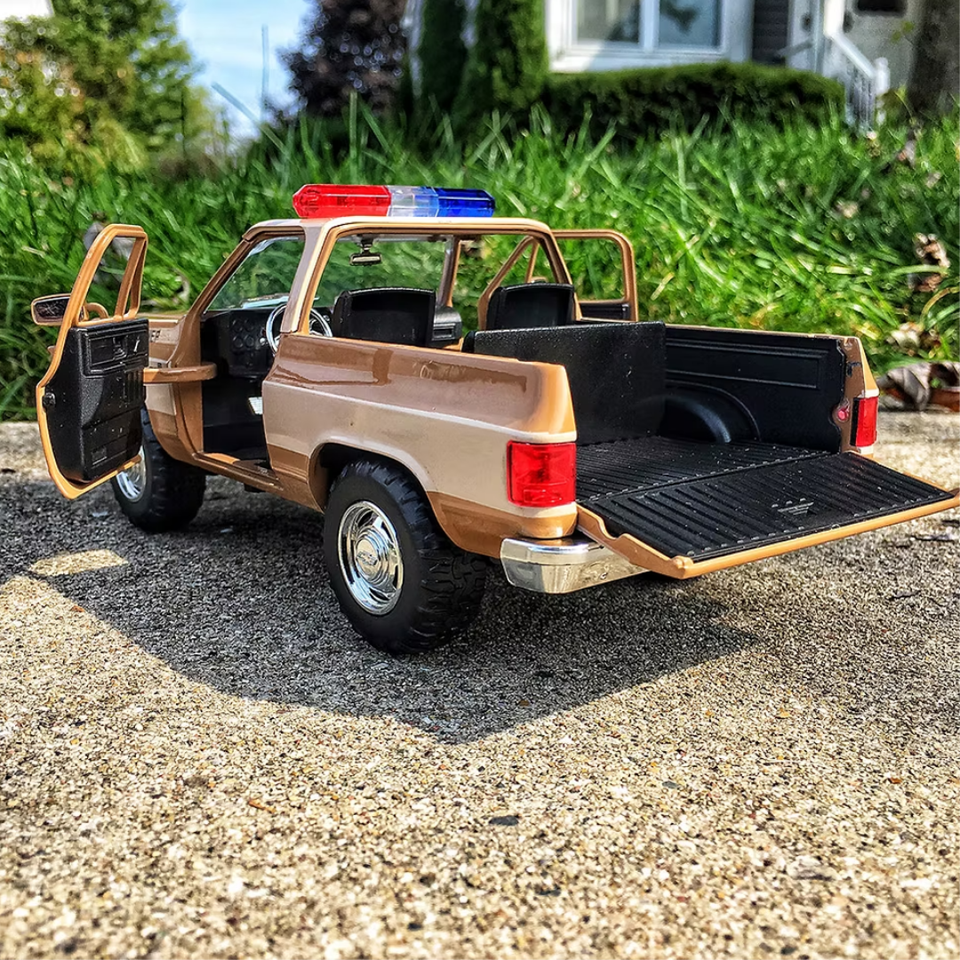 Revive Hawkins con esta réplica a escala 1:32 de la Chevrolet Blazer de Hopper, tal como aparece en la serie Stranger Things. Parte de la línea Hollywood Rides de Jada Toys, este modelo diecast combina gran nivel de detalle, neumáticos de goma y puertas funcionales, perfecto para fans de la serie y coleccionistas de autos de película.